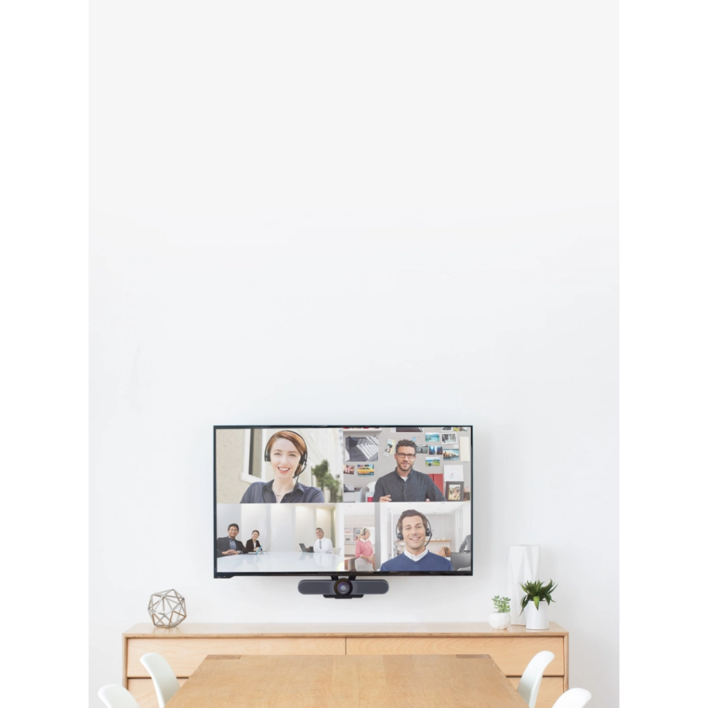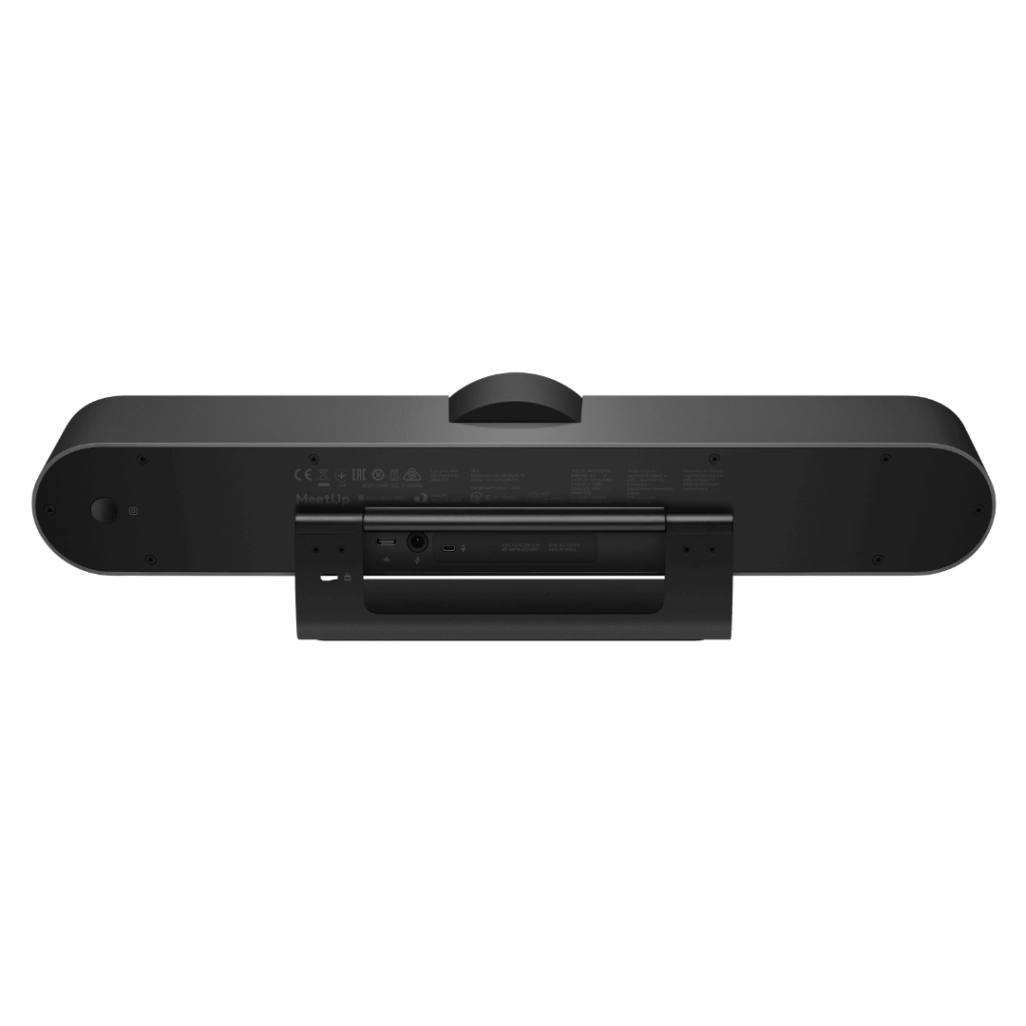 Le MeetUp intègre dans un seul boîtier compact la caméra, les microphones et le speakerphone. Sa conception permet un montage TV très discret directement sous l’écran, avec un passage de câbles intégré qui évite les fils apparents. Le résultat : une salle de réunion propre, professionnelle et toujours prête pour la prochaine réunion.